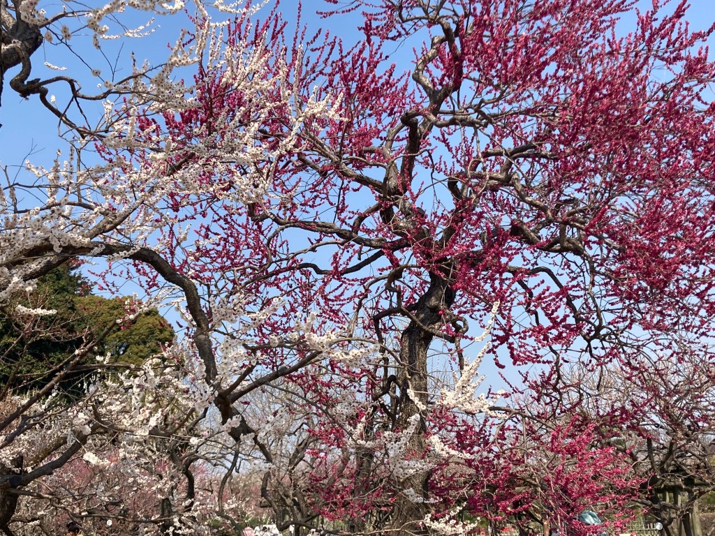 I visited my third crown jewel garden, Kairakuen in Mito, about a two hour train ride from Tokyo. The garden’s name references a particular kind of pleasure and ease. This philosophical aspect of the garden felt like a natural conclusion to my time off, as both were something I thought in sustainable and nourishing forms. Much of the pleasure we have access to on a daily basis is not…healthy? It’s at least not sustainable, as we try to consume our way out of loneliness and mortality and lovelessness and anger. Instead, Kairakuen was a place for everyone to retreat to rest in the beauty of the plum trees and the exceptionally beautiful Koubountei, a three floor residence with rooms painted in different designs. Kairakuen, of the three crown jewels, was always treated as a public space rather than the domain of the wealthy.